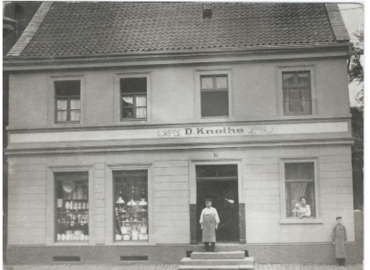 1913 errichtete Otto Knothe ein kombiniertes Wohn- und Geschäftshaus in der Brücherhofstraße 13. Hier befanden sich Werkstatt, Lager und Arbeitsbereiche – der zentrale Ort des Familienbetriebs über viele Jahrzehnte hinweg.